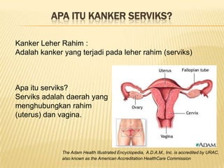 Hindari Hubungan Seksual Berisiko. Yudi Ardiansah Eka Kanker serviks menjadi urutan ketiga terbanyak di dunia setelah kanker payudara dan kanker kolorektal atau saluran pencernaan.